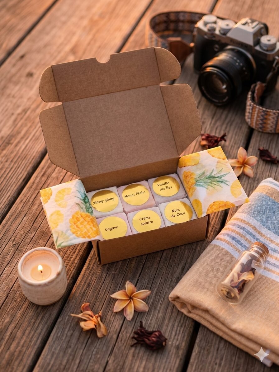Un coffret de 6 fondants parfumés solaires et exotiques pour parfumer votre intérieur comme une soirée d’été.